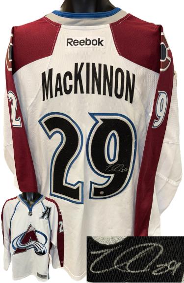 Nathan MacKinnon is a Canadian professional ice hockey player who is a center and alternate captain for the Colorado Avalanche of the NHL. MacKinnon was selected first overall by the Avalanche in the 2013 NHL entry draft. He won the Stanley Cup with the Avalanche in 2022, and has also won the Hart Memorial Trophy and the Ted Lindsay Award as the league's most valuable player during the 2023–24 season. He is widely regarded as one of the best ice hockey players of his generation. Nathan MacKinnon has hand signed this Colorado Avalanche NHL Licensed Reebok White Jersey XL. Bold Silver Pristine Signature with #29 inscription. Frameworth Sports Marketing Hologram and Frameworth Certificate of Authenticity. Image of actual item in stock - as shown