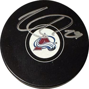 Nathan MacKinnon is a Canadian professional ice hockey player who is a center and alternate captain for the Colorado Avalanche of the NHL. MacKinnon was selected first overall by the Avalanche in the 2013 NHL entry draft. He won the Stanley Cup with the Avalanche in 2022, and has also won the Hart Memorial Trophy and the Ted Lindsay Award as the league's most valuable player during the 2023–24 season. He is widely regarded as one of the best ice hockey players of his generation. Nathan MacKinnon has hand signed this Colorado Avalanche NHL Hockey Puck. Bold Silver Signature with #29 inscription. HockeyInk Autographs Hologram and Certificate of Authenticity Card. Image of actual item in stock - as shown