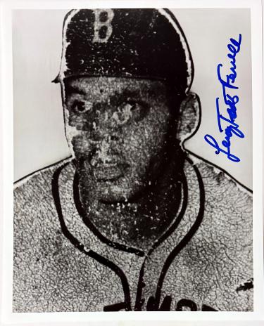 Leroy "Toots" Ferrell was an American Negro league pitcher in the 1940s. He made his Negro leagues debut at age 17 with the Newark Eagles in 1947. He went on to play for the Baltimore Elite Giants in 1948 and 1949, and served in the US Army during the Korean War. Ferrell was inducted into the Delaware Sports Museum and Hall of Fame in 2000. Leroy "Toots" Ferrell has hand signed this Baltimore Elite Giants 8x10 Photo. Bold Full Blue Pristine Signature. Photo has minor dings, from signing, sold as is. Athlon Sports Collectibles Certificate of Authenticity & Collector's Showcase Show Ticket. Signed 11/19-20/1999. Image of actual item in stock - as shown