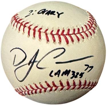 DJ Carrasco is a former pro baseball pitcher. He was originally drafted by the Texas Rangers in the 39th round. DJ Carrasco has hand signed this Official Rawlings Major League OML Baseball. Bold Black Full Signature with #77 LAM 325 2:GARY inscriptions. Very Minor Tone Spot. Athlon Sports Collectibles Certificate of Authenticity. Image of actual item in stock - as shown