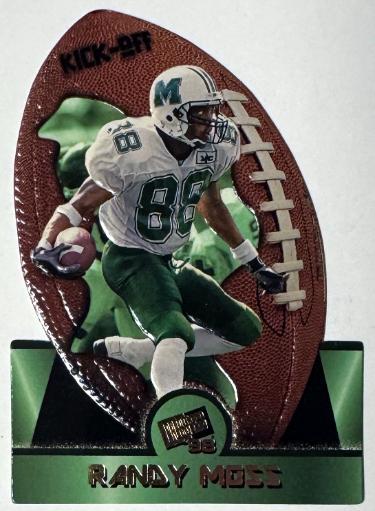 This is a Randy Moss 1998 Press Pass Kick-Off Die Cut Rookie Card (RC) #5 (Marshall/Vikings). Image of actual item in stock - as shown