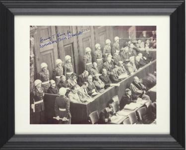 Henry T. King Jr. was an attorney who served as a U.S. Prosecutor at the Nuremberg Trials in 1946-47. Late in his career, he became a law professor and an activist, writer, and lecturer working on international law and war crimes. David M. Crane has described King as "the George Washington of modern international law". Henry T. King Jr. has hand signed this 1946 WWll Nuremberg Trials B&W 8x10 photo w/ Nuremberg Trials Prosecutor inscription. RARE signature. New, Custom Black Frame with White Mat. PSA Authentication Sticker and Certificate Of Authenticity #AD55350. Also with GAI Authentication Sticker #GV546110 and Certificate of Authenticity