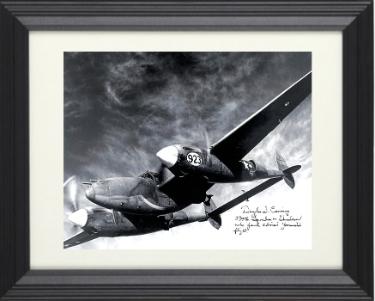 During World War II, Douglas S. Canning flew 67 Missions Guadalcanal, first tour P-400's, 2nd and 3rd tour P-38. Combat in Korea- 37 P-51 Missions, 64 A-26 reconnaissance missions Chinese and Russian borders. Vietnam he flew the C-133 carrying helicopters. He Retired in 1969 as Lt Colonel after 29 years service. Douglas S. Canning has hand signed this WWII Vintage B&W 8x10 Photo with 339th Squadron Guadalcanal who found Admiral Yamamoto flight. Douglas S. Canning has hand signed this WWII Vintage B&W 8x10 Photo w/ 339th Squadron Guadalcanal who found Admiral Yamamoto Flight inscription. New, Custom Black Frame with White Mat. PSA Authentication #AD31606 and PSA Certificate of Authenticity.