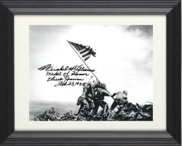 Hershel W. Williams was a United States Marine Corps Reserve warrant officer and United States Department of Veterans Affairs veterans service representative who received the Medal of Honor, the United States military's highest decoration for valor, for heroism above and beyond the call of duty during the Battle of Iwo Jima in World War II. Williams was the last living Medal of Honor recipient from World War II. Hershel W. Williams has hand signed this 8x10 Photo with Medal of Honor Iwo Jima 2/23/45 inscriptions. New, Custom Black Frame with White Mat. PSA Authentication #AD38901 and PSA Certificate of Authenticity.