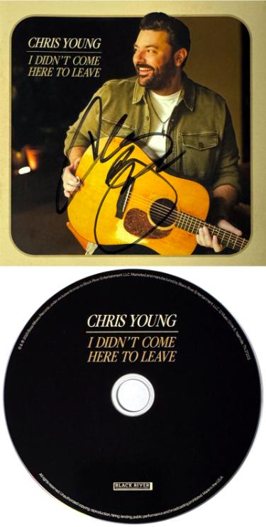 Didn't Come Here to Leave features 14 fresh songs over nine co-writes, with new and longtime collaborators like Jessie Jo Dillon, Trannie Anderson, and Chris DeStefano joining Young's next act. Re-centering his foundation of timeless romance, while embracing the energy of his legendary live shows (and bringing that deep vocal rumble "back to my baritone roots"), the set represents the most complete cross-section of his creative vision - maybe ever - and the highest level of craftsmanship in Young's remarkable career. Each song captures another essential element of a country life, expressed through equal measures of good-timing energy, and graceful grit. Format / CD- Released / 10/17/2025. Chris Young has hand Signed this 2025 I Didn't Come Here to Leave Boots On The Ground Album Cover Booklet & CD. Brand new, un-played. Bold black full pristine signature on CD Booklet Front cover. Athlon Sports Collectibles Certificate of Authenticity. Image of actual item in stock - as shown