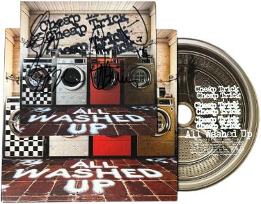 All Washed Up is the twenty-first studio album by American rock band Cheap Trick, released on November 14, 2025. Cheap Trick includes: guitarist Rick Nielsen, bassist Tom Petersson, lead vocalist Robin Zander.Their work bridged elements of '60s guitar pop, '70s hard rock, and the emerging punk rock sound, and would help set the template for subsequent power pop artists. Rick Nielsen, Tom Petersson & Robin Zander from Cheap Trick have all signed hand signed this 2025 "All Washed Up" 4x4 Art Card Insert/Album Cover with Brand New CD. Bold Black Full Pristine Signatures with Artwork. Athlon Sports Collectibles Certificate of Authenticity. Image of actual item in stock - as shown