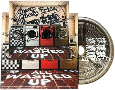 All Washed Up is the twenty-first studio album by American rock band Cheap Trick, released on November 14, 2025. Cheap Trick includes: guitarist Rick Nielsen, bassist Tom Petersson, lead vocalist Robin Zander.Their work bridged elements of '60s guitar pop, '70s hard rock, and the emerging punk rock sound, and would help set the template for subsequent power pop artists. Rick Nielsen, Tom Petersson & Robin Zander from Cheap Trick have all signed hand signed this 2025 "All Washed Up" 4x4 Art Card Insert/Album Cover with Brand New CD. Bold Black Full Pristine Signatures with Artwork. Athlon Sports Collectibles Certificate of Authenticity. Image of actual item in stock - as shown