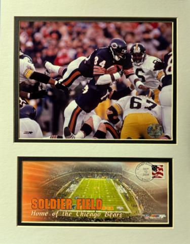 Walter Payton 2004 Chicago Bears/Soldier Field USPS Stamped Cache/Envelope (9/12/2004) with Photo Custom Matted to 12x16 - NEW. Ready For Framing. Brand New in Original USPS FACTORY Packaging