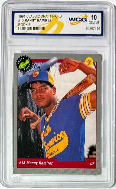 This is a Manny Ramirez 1991 Classic Draft Picks Rookie Card (RC) #10- WCG Graded 10 Gem Mint. Image of actual item in stock - as shown