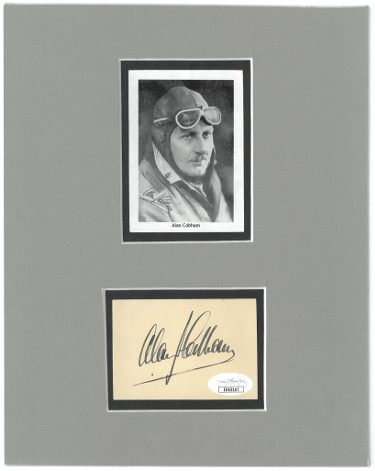 A member of the Royal Flying Corps in World War I, Alan Cobham became famous as a pioneer of long distance aviation. After the war he became a test pilot for the de Havilland aircraft company. In 1997, Cobham was inducted into the International Air & Space Hall of Fame at the San Diego Air & Space Museum. In 2016 he was inducted into the Airlift/Tanker Hall of Fame. Sir Alan Cobham has hand signed this Vintage 3x2.4 Cut w/ Photo Matted to overall 8x10 in size. JSA Hologram #EE63147 and JSA Certificate of Authenticity.