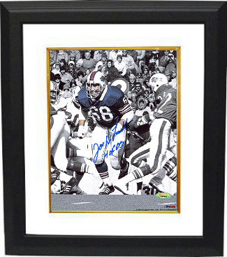 Joe DeLamielleure is a former American football offensive lineman who was an All-American at Michigan State. He was selected by the Buffalo Bills in the first round of the 1973 NFL Draft. He won All-Rookie Honors, after finding out a physical condition with his irregular heartbeat was not serious. In 1973 the Buffalo Bills rushing offense led the NFL in yards, yards per carry, as well as rushing touchdowns. DeLamielleure was perhaps the central figure in the "Electric Company," the Bills' offensive line that paved the way for O.J. Simpson to rush for 2,003 yards in 1973, the first player ever to break that barrier, and the only player ever to do so in a 14-game schedule. Joe DeLamielleure has hand signed this Buffalo Bills 8x10 Spotlight Photo with HOF 03 inscription. Tri-Star Hologram and Certificate of Authenticity from Athlon Sports. Custom White Mat and Premium Black Color Framed as shown.