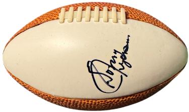 Sonny Jurgensen played in the NFL for 18 seasons with the Philadelphia Eagles and Washington Redskins. He was inducted into the Pro Football Hall of Fame in 1983. He was also a longtime color commentator for Washington's radio broadcast crew. Sonny Jurgensen has Hand Signed this Plastic Mini Football (5.5 inch). Bold black full pristine signature. Athlon Sports Collectibles Certificate of Authenticity. Image of actual item in stock - as shown