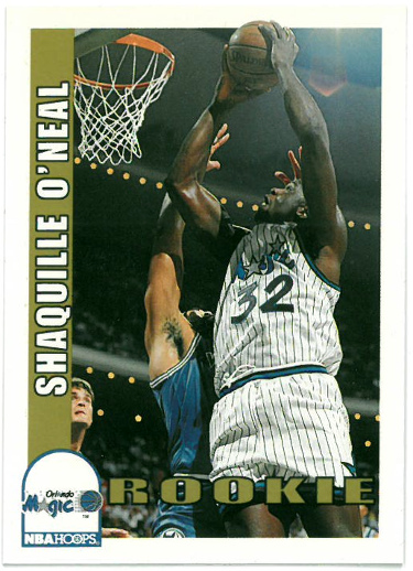 This is a Shaquille O'Neal 1992-93 NBA Hoops Rookie Card (RC) #442 (Orlando Magic/HOF). Image of actual item instock - as shown.