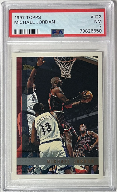 This is a Michael Jordan 1997-98 Topps Card #123- PSA Graded 7 NM (Chicago Bulls/HOF/GOAT). Image of actual item instock - as shown.