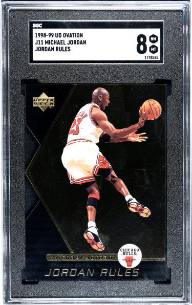 This is a Michael Jordan 1998-99 Upper Deck Ovation Jordan Rules Card #J11- SGC Graded 8 NM-MT (Chicago Bulls/HOF/GOAT). Image of actual item in stock - as shown