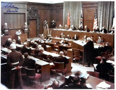 Whitney Robson Harris was an American attorney, and one of the last surviving prosecutors from the Nuremberg Trials. After the end of World War II, Harris was selected to be part of the legal team led by U.S. Supreme Court Justice Robert H. Jackson that began the prosecution of war criminals in Nuremberg, Germany. Harris led the team's case against Ernst Kaltenbrunner, the highest-ranking leader of the Nazi Security Police to face trial. He was also responsible for interrogating Rudolf Franz Ferdinand Hoess, the former commander of the Auschwitz concentration camp. For his work in the Nuremberg trials, Harris was decorated with the Legion of Merit. Whitney Harris has hand signed this 1945-46 WWll Nuremberg Trials Vintage Color 8x10 photo , pristine blue full signature. PSA Authentication #AD38867 and PSA Certificate Of Authenticity . Very rare signature