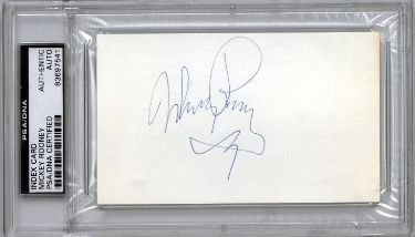 Mickey Rooney was an American actor. In a career spanning nine decades, he appeared in more than 300 films and was among the last surviving stars of the silent-film era. A versatile performer, he became a celebrated character actor later in his career. In 1983, the Academy of Motion Picture Arts and Sciences gave Rooney their Academy Honorary Award for his lifetime of achievement. Mickey Rooney signed 3x5 Index Card. PSA Encapsulated #83697541. Exact item instock as shown.