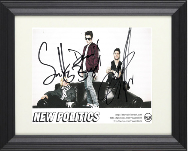 New Politics is a Danish rock band from Copenhagen, formed in 2009. It currently consists of David Boyd, Sřren Hansen, and Louis Vecchio. The band's sound has been described as a blend of "punk, pop, and electronically induced dance rock".[2] They have released five albums. David Boyd, Soren Hansen and Louis Vecchio have signed this New Politics Rock Band Signed RCA Records 5x7 Photo. Three, bold black full pristine signatures. Certificate of Authenticity from Athlon Sports Collectibles. New Custom Black Frame with White Mat as shown.