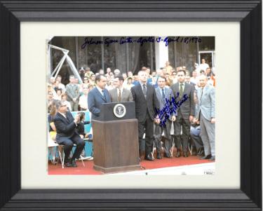 Gerald "Gerry" Griffin is an American aeronautical engineer and former NASA official, who served as flight director during Apollo program and director of Johnson Space Center, succeeding Chris Kraft in 1982. After the Apollo Program was completed Gerry served in other roles at NASA, first in multiple positions at NASA Headquarters in Washington, D.C., then as the deputy director of the Dryden (now Armstrong) Flight Research Center in California, then as deputy director of the Kennedy Space Center in Florida. In 1982 he returned to Houston as director of the Johnson Space Center. Gerald "Gerry" Griffin has hand signed this 8x10 Photo with Apollo Flight Director Johnson Space Center Apollo 13- April 18, 1970. New, Custom Black Frame with White Mat. JSA Hologram #EE63194 and JSA Certificate of Authenticity.