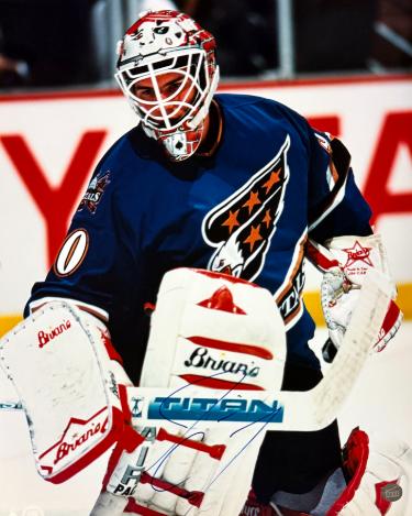 Jim Carey is a former pro ice hockey goaltender who played for the Capitals, Bruins, and Blues in the NHL. He won the Vezina Trophy for the NHL's best goaltender in 1996. Jim Carey has hand signed this Signature Rookies Washington Capitals 8x10 Photo. Blue Full Signature. Signature Rookies Hologram & Certificate of Authenticity