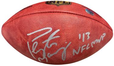Peyton Manning will surely go down in history as one of the best quarterbacks to ever play the game of football. A Pro Bowl choice every year since he stepped onto a NFL field in 1998, Manning set a NFL single-season record in 2004 with 49 touchdown passes and has thrown for nearly 40,000 regular-season yards in his career. Manning raised the bar even higher in 2006, when he led the Indianapolis Colts to the Super Bowl Championship and won SB MVP honors. Peyton Manning has hand signed this Official NFL Authentic New Duke Leather Football. Bold Silver Full Pristine Signature with '13 NFL MVP inscription. Fanatics Hologram #0388498 and Fanatics Certificate of Authenticity. Image of actual item in stock - as shown
