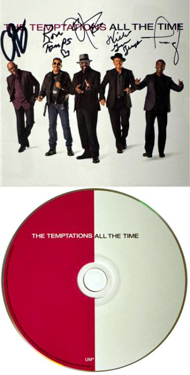 The Temptations is an American vocal group formed in Detroit, Michigan, in 1961 as The Elgins, known for their string of successful singles and albums with Motown from the 1960s to the mid-1970s. The group members were known for their choreography, distinct harmonies, and dress style. Having sold tens of millions of albums, the Temptations are among the most successful groups in popular music. All the Time is a 2018 studio album by The Temptations made up of cover versions of contemporary R&B songs. The Temptations- Otis Williams, Ron Tyson, Terry Weeks, Larry Braggs, and Willie Greene have all hand signed this 2019 All The Time Album Cover Booklet w/ Brand New CD & Case. Bold black full pristine signatures on Booklet. Exact image as shown. Athlon Sports Collectibles Certificate of Authenticity. Image of actual item in stock - as shown