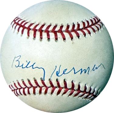 Billy Herman was an American second baseman in Major League Baseball (MLB) during the 1930s and 1940s. He was known for his stellar defense and consistent batting. He still holds many National League (NL) defensive records for second basemen. Billy Herman has hand signed this Official RONL Rawlings National League Baseball (William White). Bold Blue sweet spot signature. Ball has minor tone, sold as is. Certificate of Authenticity from Athlon Sports Collectibles. Image of actual item in stock - as shown