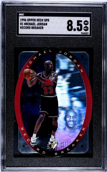 This is a Michael Jordan 1996 Upper Deck SPX Record Breaker Die Cut Card #R1-SGC Graded 8.5 NM-MT+ (Chicago Bulls/HOF/GOAT). Image of actual item in stock - as shown