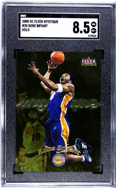 This is a Kobe Bryant 2000-01 Fleer Mystique Gold Card #30- SGC Graded 8.5 NM-MT+ (Los Angeles Lakers/HOF). Image of actual item in stock - as shown