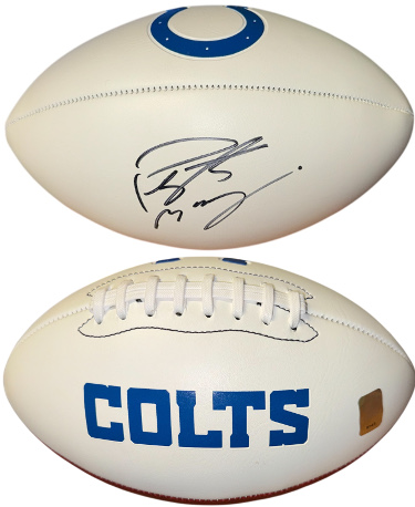 Peyton Manning will surely go down in history as one of the best quarterbacks to ever play the game of football. His accomplishments are staggering. A Pro Bowl choice every year since he stepped onto a NFL field in 1998, Manning set a NFL single-season record in 2004 with 49 touchdown passes and has thrown for nearly 40,000 regular-season yards in his career. Manning raised the bar even higher in 2006, when he led the Indianapolis Colts to the Super Bowl Championship and won SB MVP honors. Peyton Manning signed Indianapolis Colts Franklin Logo WP Full Size Football.
